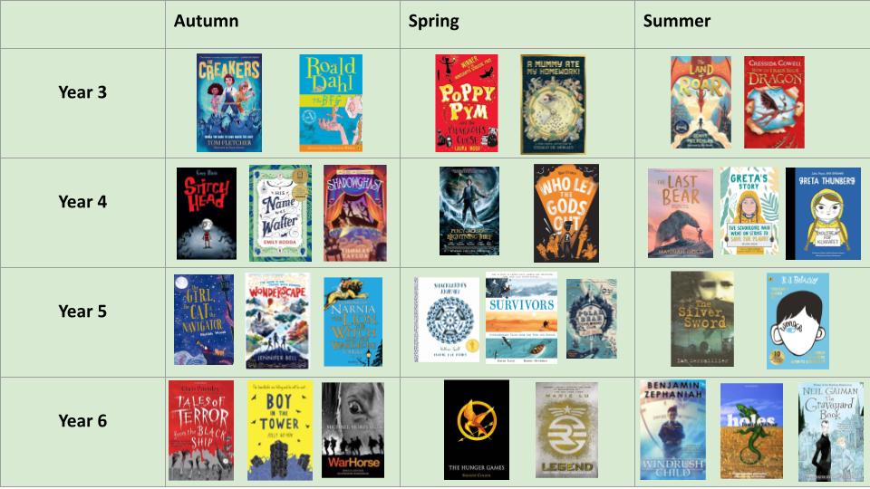 Every year group has a whole class reading experience every day. Texts are chosen to engage and enthuse readers as well as provide experiences of a wide range of texts/genre. A balance of heritage texts, modern choices and choices by the children are utilised throughout the year. Links, where appropriate, are made to the English learning and the wider curriculum e.g The Black Ship linked to the pirate project unit in Year 6. This time provides a good opportunity for adults and children to discuss the texts in more detail, modelling the metacognition of a reader.